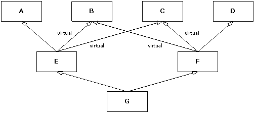 [129] Note that virtual inheritance is crucial to this example. If Top were not a virtual base class, there would be multiple Top subobjects, and the ambiguity would remain. Dominance with multiple inheritance only comes into play with virtual base classes.